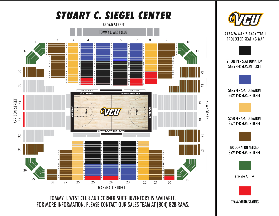 Donations made to fulfill required per seat contributions will be counted towards your giving level on the Ram Athletic Fund benefits chart. Any additional donations made to Ram Athletic Fund Annual Fund will also be counted towards benefits. For example, if you have two season tickets in the $250 per seat contribution area ($500 total donation), but you would like to receive access to the Commonwealth Room, you would need to donate an additional $1,250 to the Ram Athletic Fund in order to reach the Black & Gold Society and receive that benefit.